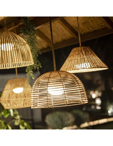 É ideal para eventos e festas, pois não necessita de instalação. Também é ideal tanto para uso interno da sua casa como para qualquer recanto externo, jardim, terraço ou negócio. Combine-o com os modelos suspensos Sisine, Bossa e Reona para criar composições verdadeiramente surpreendentes. Todos esses modelos pendentes são IP54. A luminária pendente de design Calobra inclui corda de 3 metros, abajur e lâmpada com 3 intensidades de até 900 lumens de luz. Autonomia até 20 horas.