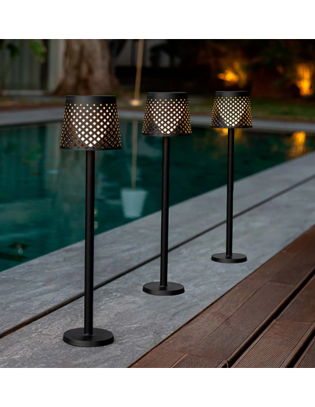 O candeeiro solar Greta é uma revolução no setor da iluminação de jardins, pois são 5 candeeiros em 1. Pode desfrutar de um candeeiro de pé, um candeeiro de mesa, dois postes em alturas diferentes ou um aplique num só produto: só terá de montar a versão desejada. Pode ser carregado pela luz solar ou micro USB e possui dois modos de acender: MANUAL ou AUTOMÁTICO.