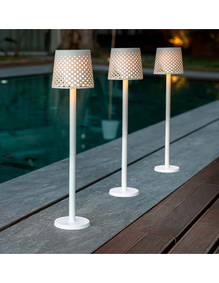 O candeeiro solar Greta é uma revolução no setor da iluminação de jardins, pois são 5 candeeiros em 1. Pode desfrutar de um candeeiro de pé, um candeeiro de mesa, dois postes em alturas diferentes ou um aplique num só produto: só terá de montar a versão desejada. Pode ser carregado pela luz solar ou micro USB e possui dois modos de acender: MANUAL ou AUTOMÁTICO.