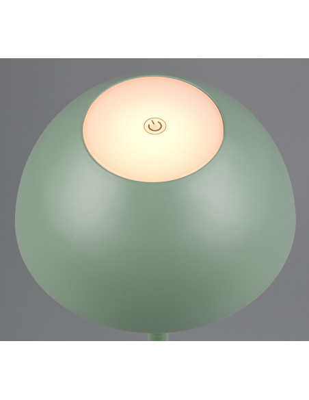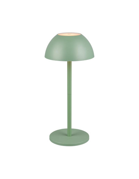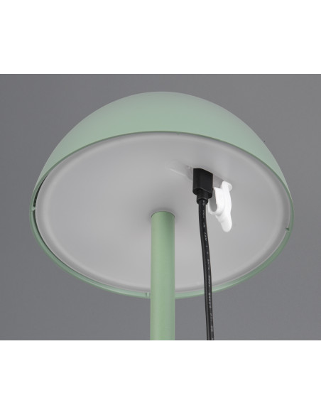 Candeeiro de mesa em plástico com iluminação suave de cima e de baixo.