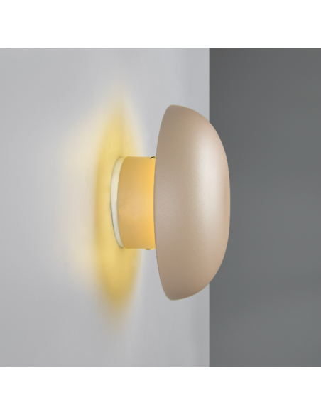Candeeiro decorativo de parede em formato de cogumelo, com estrutura em metal e design moderno.