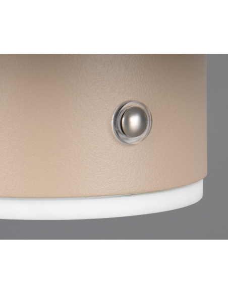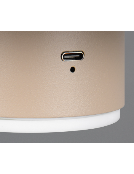 Dispõe de 4 níveis de intensidade, acionados por toque, e é recarregável através de cabo USB-C.