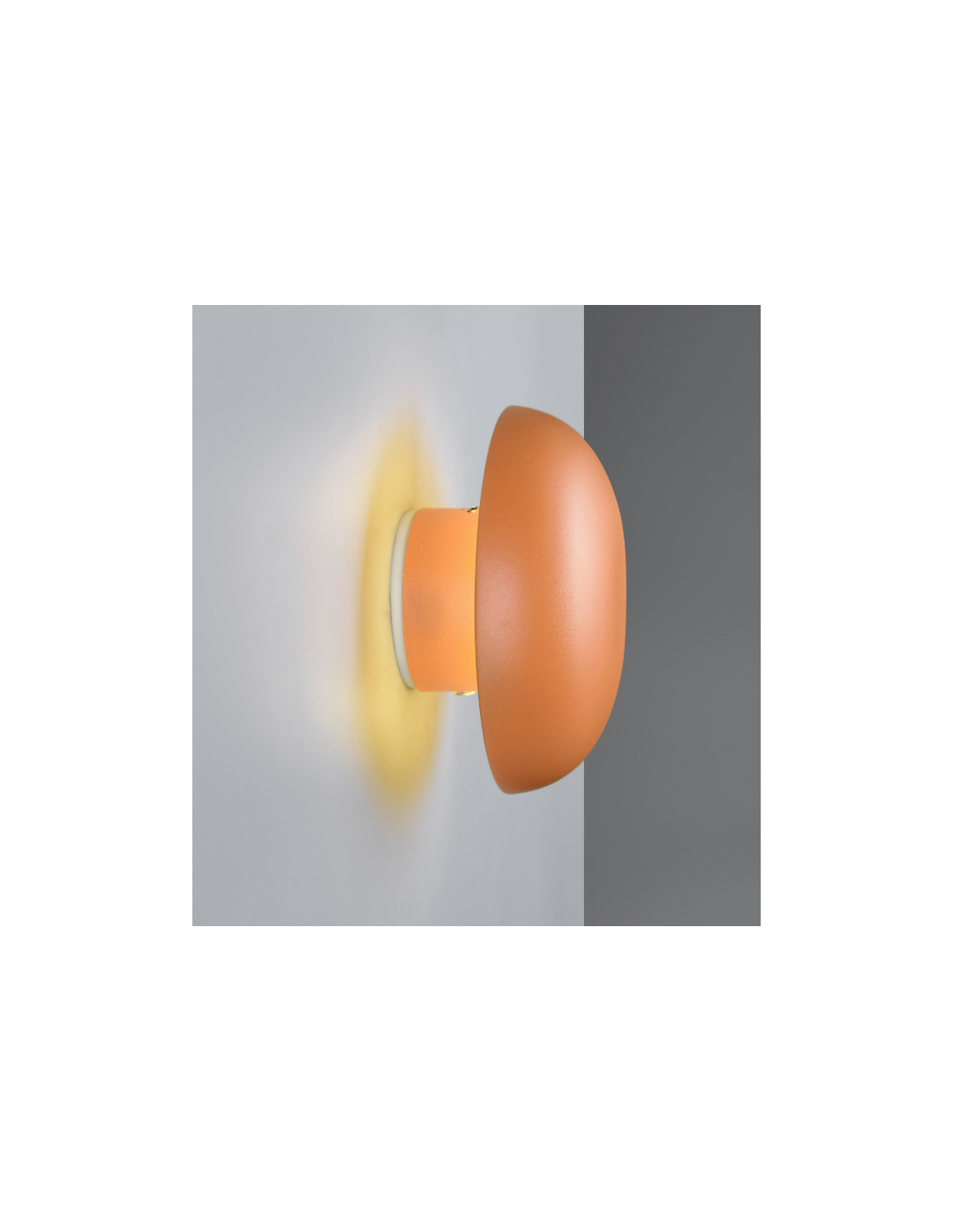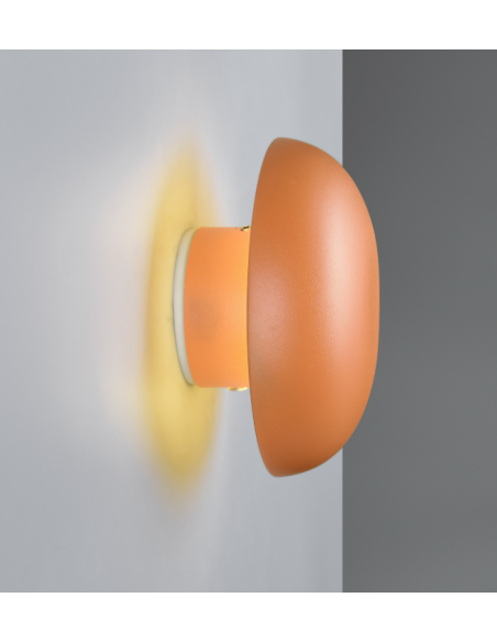 Candeeiro decorativo de parede em formato de cogumelo, com estrutura em metal e design moderno.