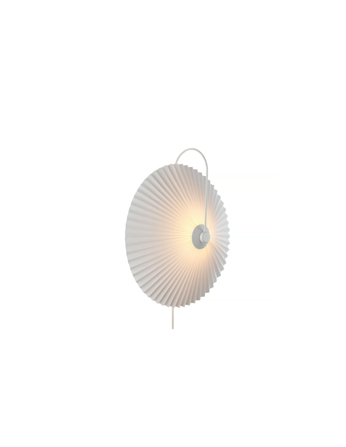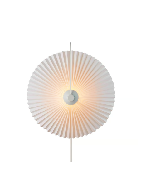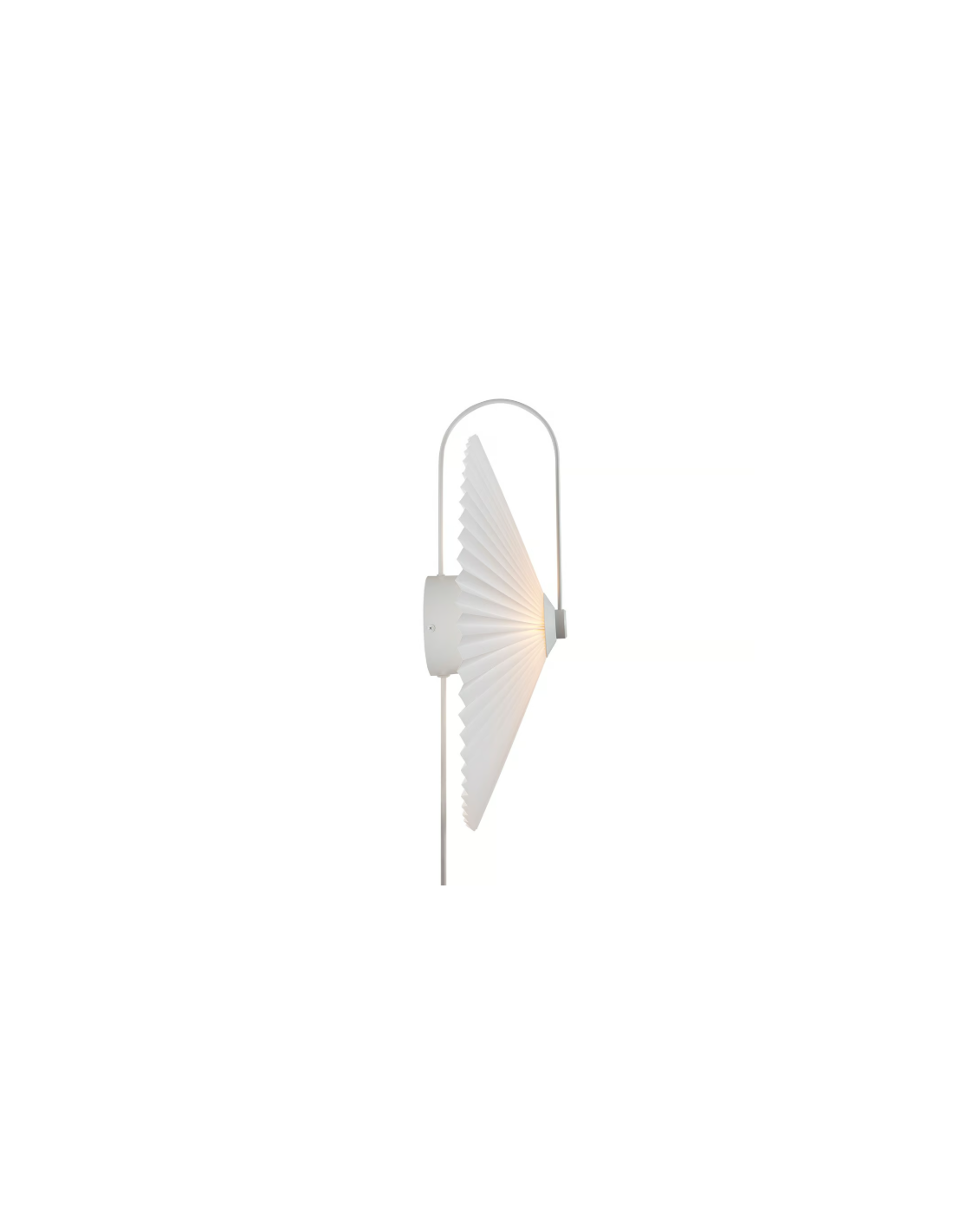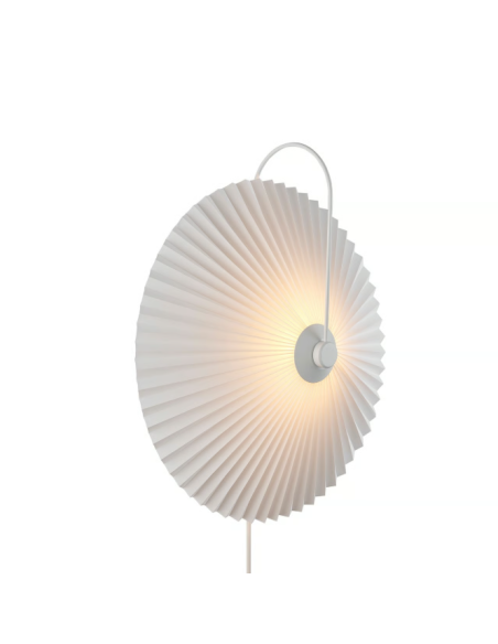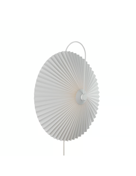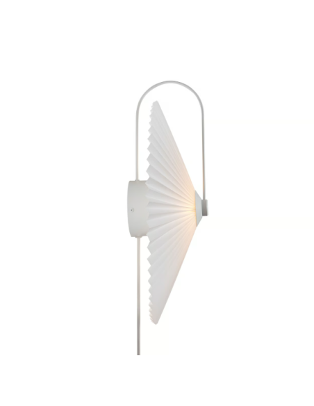 NordluxO aplique Nadia Branco é uma reinterpretação moderna de um clássico, com cúpula plissada que proporciona uma luz suave e difusa e estrutura metálica curva de estilo elegante.