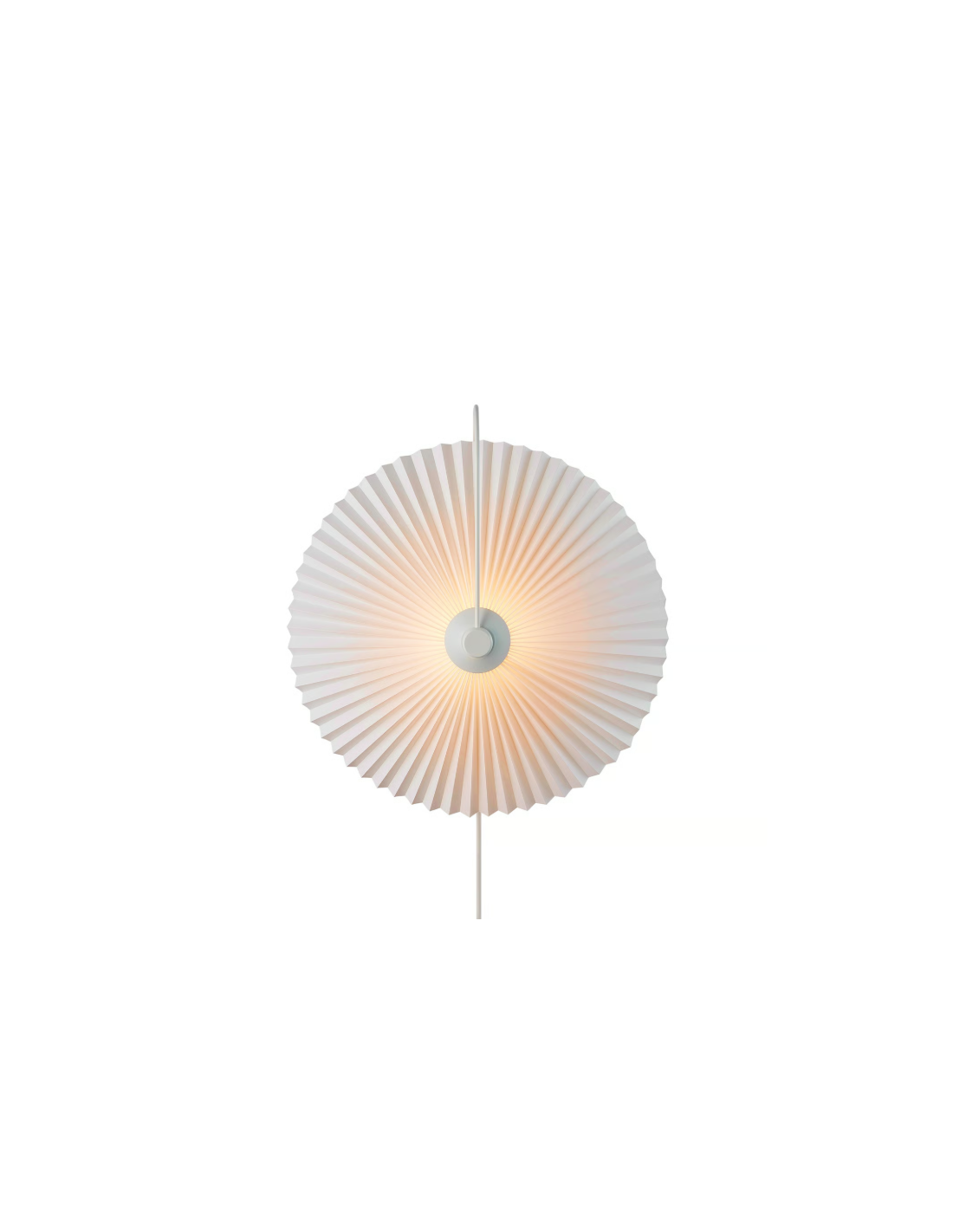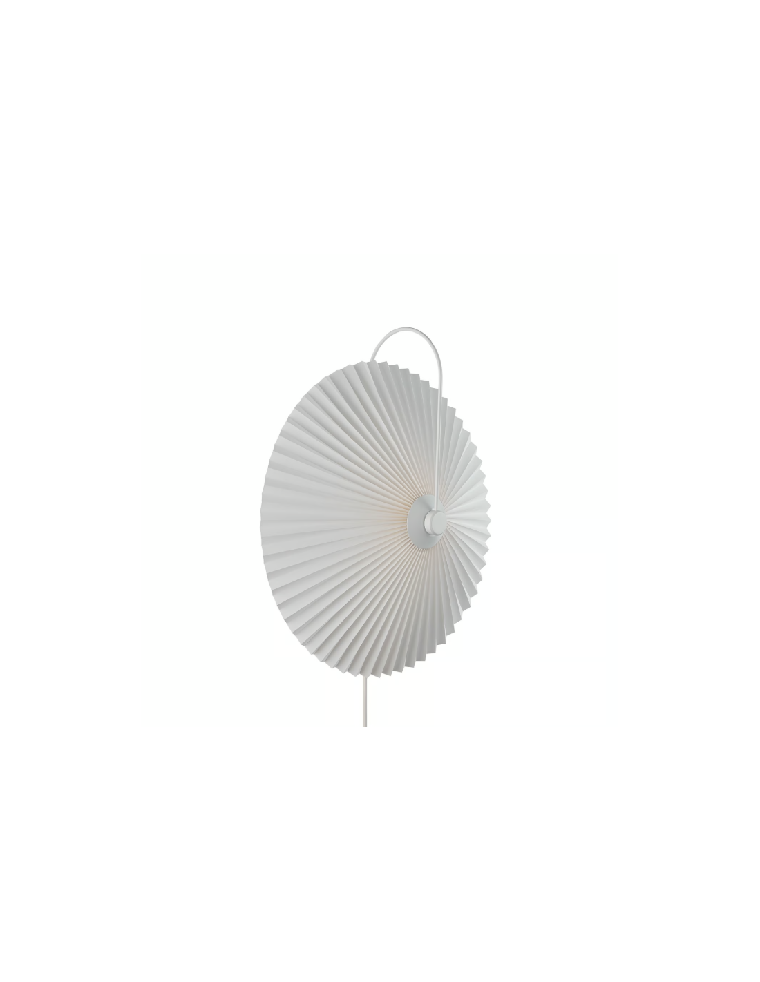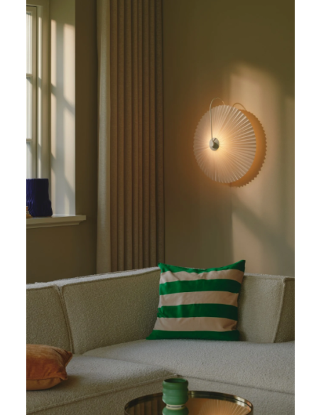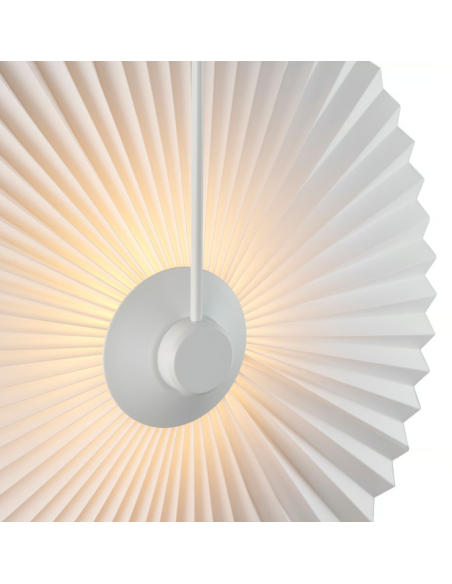 NordluxO aplique Nadia Branco é uma reinterpretação moderna de um clássico, com cúpula plissada que proporciona uma luz suave e difusa e estrutura metálica curva de estilo elegante.