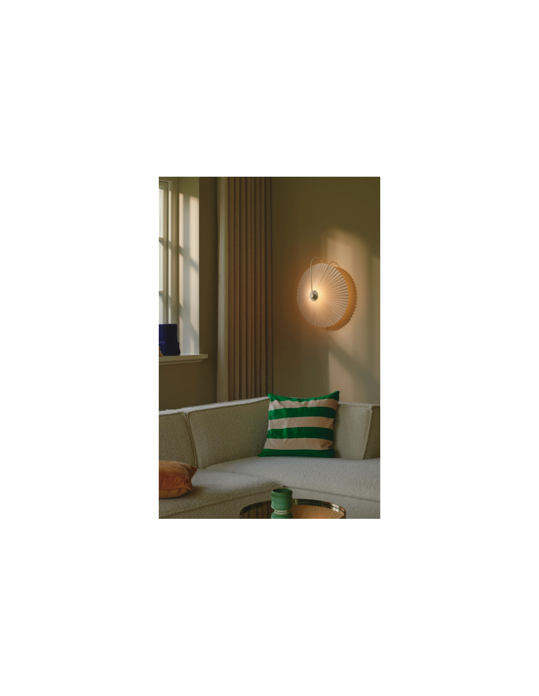 Combinando tradição e modernidade, o aplique Nadia Branco apresenta uma cúpula plissada que suaviza a luz, criando uma atmosfera acolhedora e confortável. A sua estrutura curva em metal adiciona um toque contemporâneo ao design, equilibrando leveza e sofisticação. Esta luminária de parede é ideal para quem procura um estilo clássico com uma abordagem moderna — perfeita para corredores, salas ou quartos, onde a luz suave e o design refinado se complementam na perfeição.