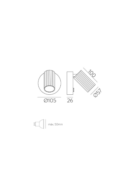 Luminária de parede Modrian 16/3951-10 branca/Preto/preto dourado, LED GU10 8W, CL.II, com interruptor, ajustável