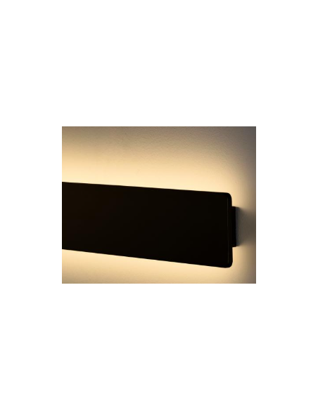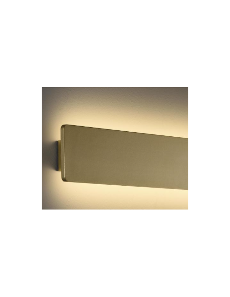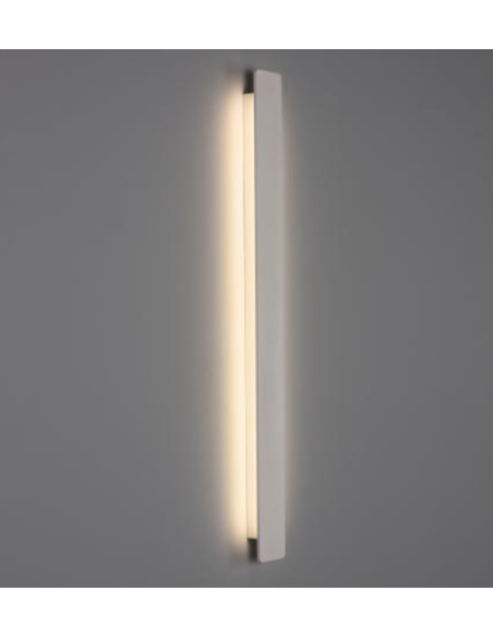 A Fosca 60 é um aplique de parede LED elegante e moderno, com corpo em alumínio texturizado disponível em branco, preto ou dourado técnico. Mede 60 cm de comprimento e integra LED de 18 W, oferecendo 1800 lúmens com temperatura de cor ajustável entre 2700 K e 3000 K via comando deslizante, ângulo de abertura de 85°, classe de isolamento I, proteção interna IP20, resistência a impactos IK05