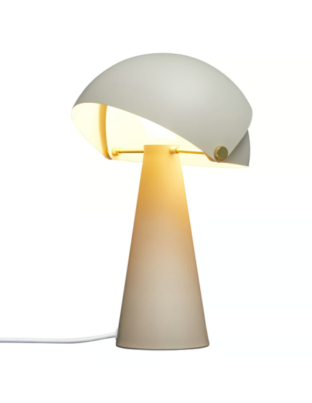 O design é minimalista e contemporâneo, mas com um carácter lúdico, graças à mobilidade do abajur. A superfície acetinada fosca e os detalhes em latão escovado reforçam a sofisticação da peça, tornando-a ideal tanto para ambientes modernos como clássicos.