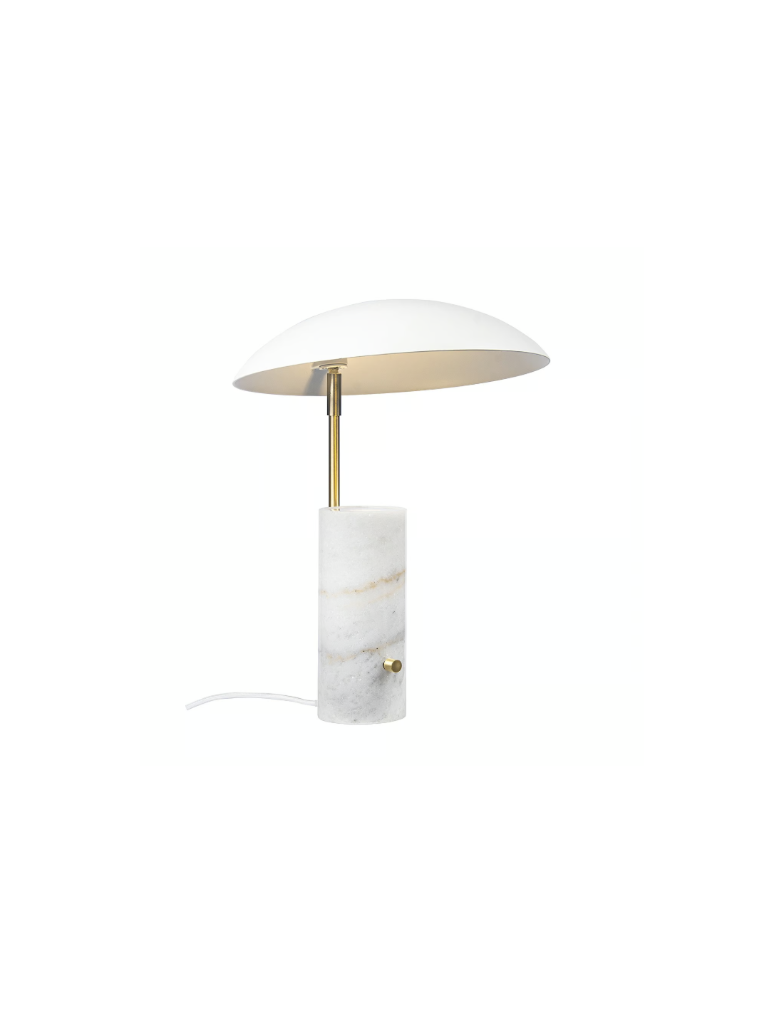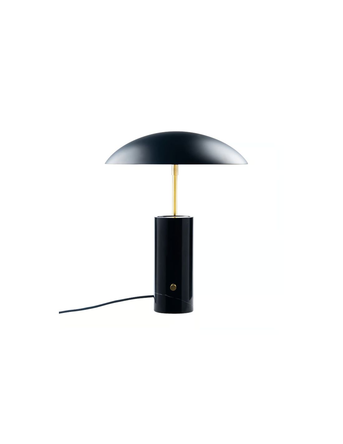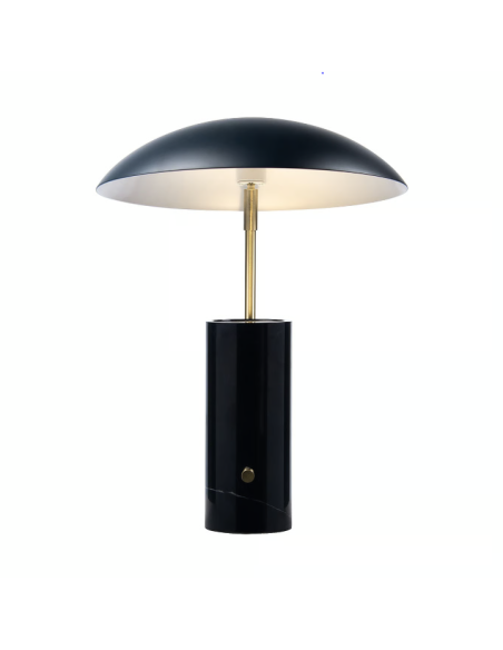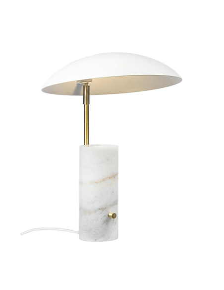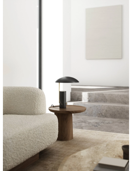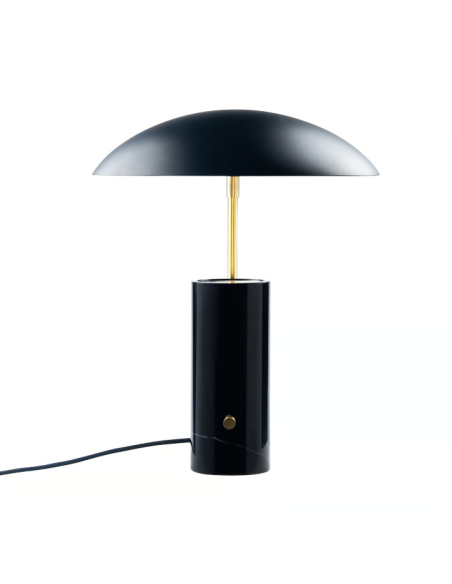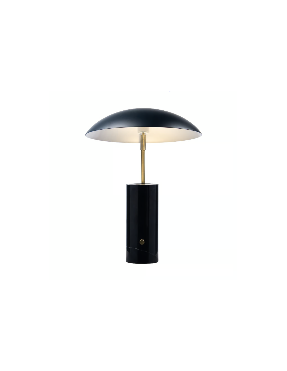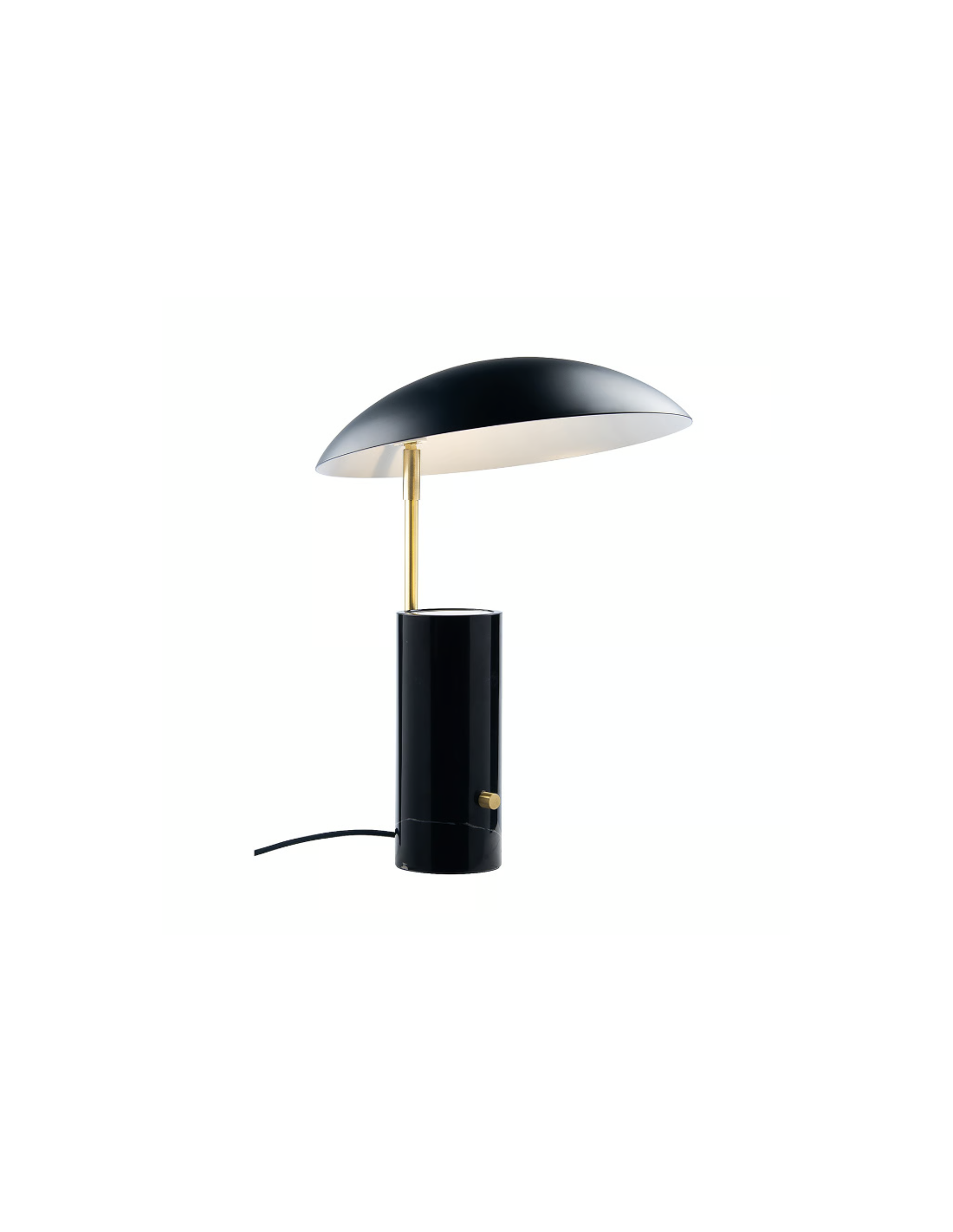 A grande cúpula redonda e ajustável permite redirecionar a luz para cima, oferecendo uma iluminação suave e indireta, perfeita para criar atmosferas acolhedoras e intimistas. A base em mármore natural, sólida e sofisticada, contrasta com os detalhes em latão e metal, reforçando a exclusividade e o cuidado nos acabamentos.