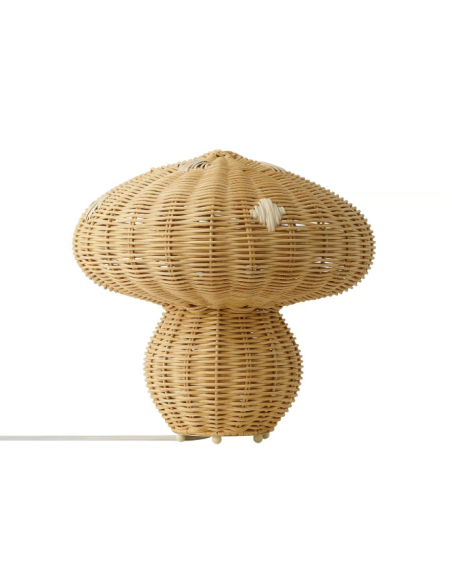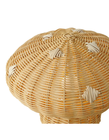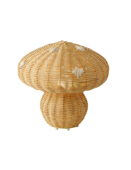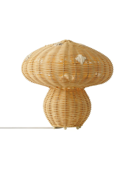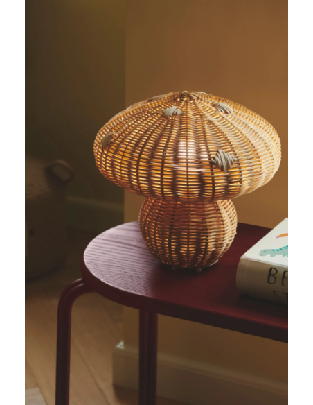 NordluxO abajur Allie Nature tem um design inspirado na natureza, com estrutura em rattan que projeta uma luz suave e decorativa. Seu formato lembra um cogumelo, sendo ideal para criar um ambiente acolhedor no quarto infantil.