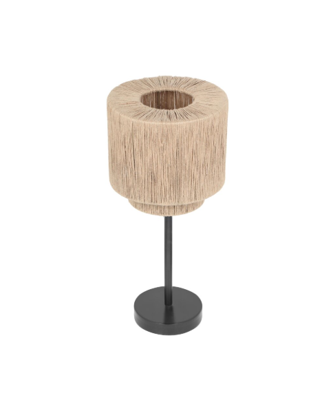 A Smilla é uma mesa moderna com cúpula em juta natural, suporte metálico preto, interruptor no cabo, altura de 45 cm e soquete E27 (máx. 10 W LED), ideal para luz suave em salas, quartos ou escritórios
