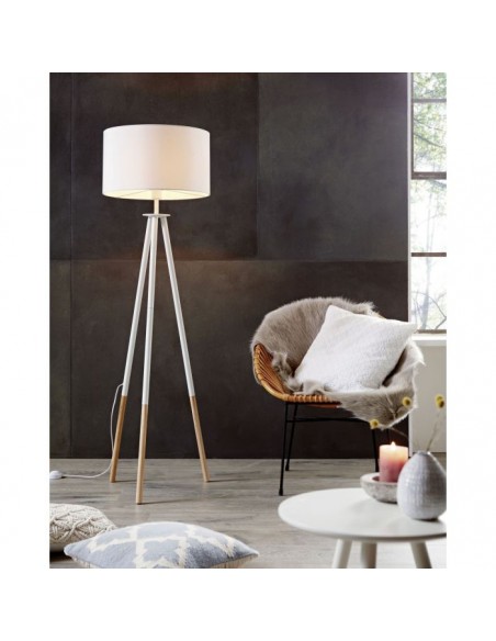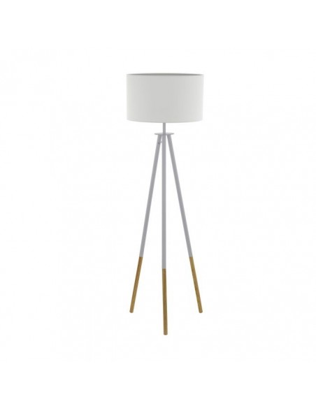 Materiais: Metal(branco) | Madeira | Abajour tecido branco e interior prata