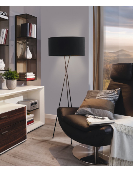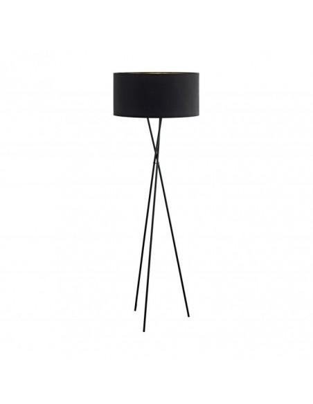 Materiais: Metal (Preto) |Abajour Tecido Preto e interior Dourado