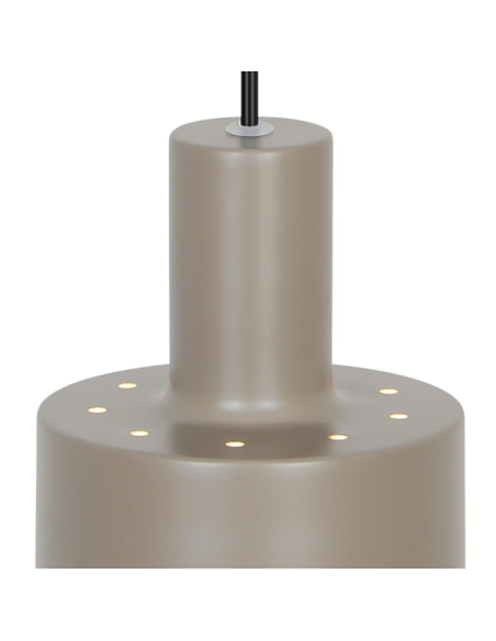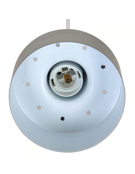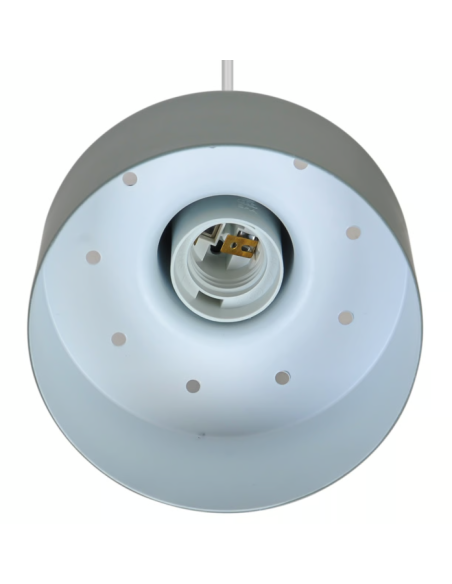 O pingente Matis é uma luminária de design minimalista, ideal para diferentes estilos de decoração de interiores. Destaca-se pelos pequenos furos no topo da cúpula, que criam um elegante efeito de luz.