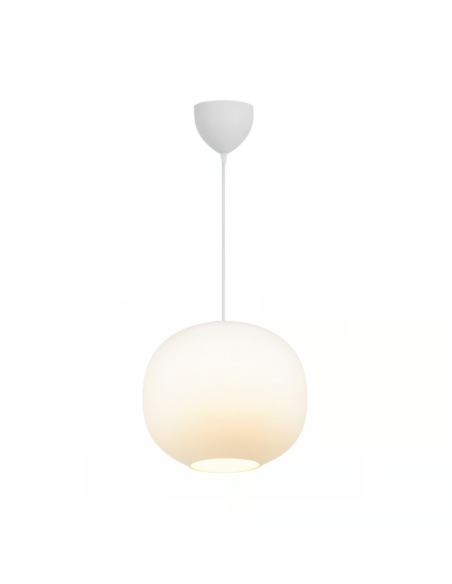 NordluxO pingente Navone 30 Branco apresenta um design clássico e intemporal com toques modernos, combinando uma forma orgânica com uma harmoniosa mistura de vidro opala e detalhes em latão.