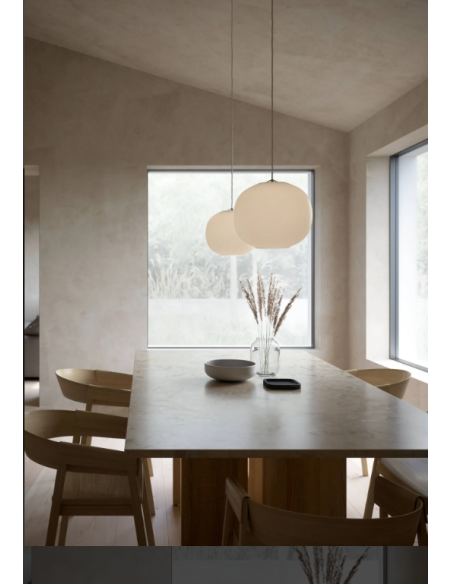 Projetado pelo estúdio de design dinamarquês Mavro/Lefèvre, o pingente Navone 30 Branco destaca-se pela sua silhueta suave e arredondada. A cúpula, feita em vidro opala, transmite leveza e elegância, enquanto a base subtilmente curvada acrescenta profundidade e personalidade à peça, tornando-a mais do que uma simples esfera. Os detalhes em latão introduzem um toque contemporâneo e refinado, acentuando o carácter sofisticado da luminária. Ideal para salas de jantar, entradas ou zonas de estar, o Navone 30 ilumina o espaço com delicadeza e estilo, encaixando perfeitamente em ambientes clássicos, modernos ou escandinavos.