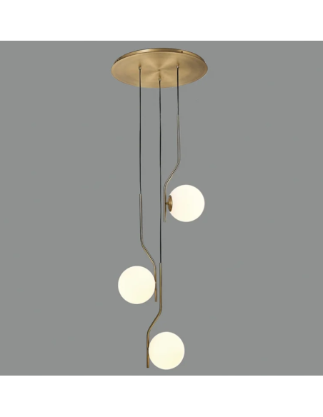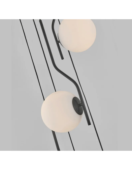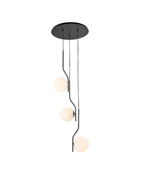 ACB LightingA Maui Pendant 3L é uma suspensão decorativa com três globos opalinos e estrutura em preto ou dourado, que oferece iluminação ambiente com estilo moderno e adaptável a interiores com espaços generosos .