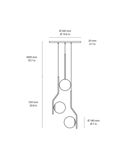 A Maui Pendant 3L é uma elegante luminária suspensa composta por três globos de vidro opalino pendendo em cabos de comprimento fixo, fixados a uma base oval em metal disponível em preto mate ou dourado antigo. Cada globo utiliza lâmpada E27 (até 15 W, não incluídas), ideal para criar iluminação decorativa sob mesas, em salas ou escadas com pé-direito alto. Mede 48 cm, altura máxima de 2 m, pesa cerca de 5,45 kg e possui proteção IP20, sendo adequada apenas para uso interior