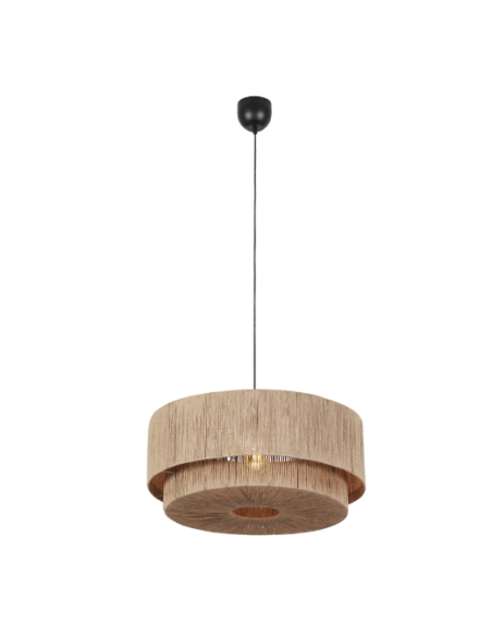 Trio LightingLuminária suspensa em estilo boho, com abajur de juta natural e estrutura em metal preto fosco. Ideal para ambientes aconchegantes e compatível com lâmpadas LED de alta eficiência.