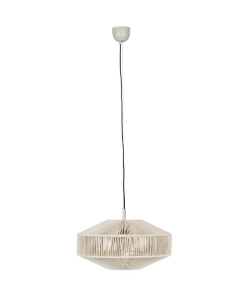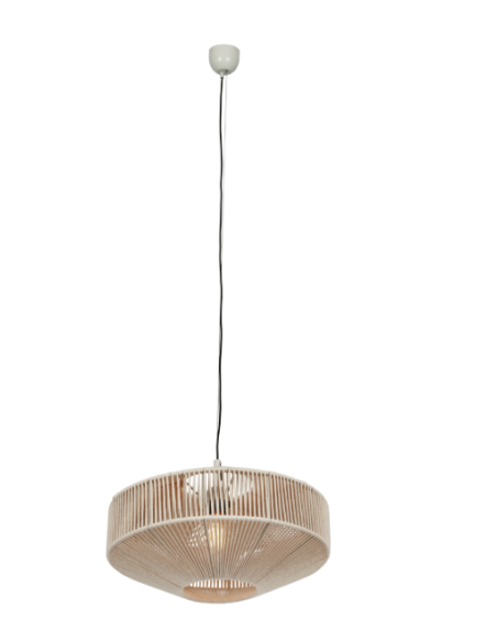 Trio LightingA luminária suspensa SVEA une o estilo boho à leveza do algodão natural tecido, criando ambientes elegantes e acolhedores com luz suave.