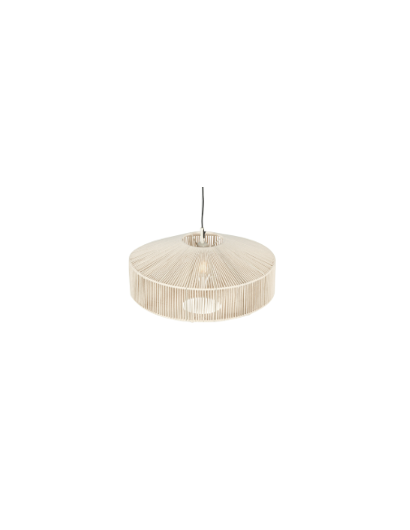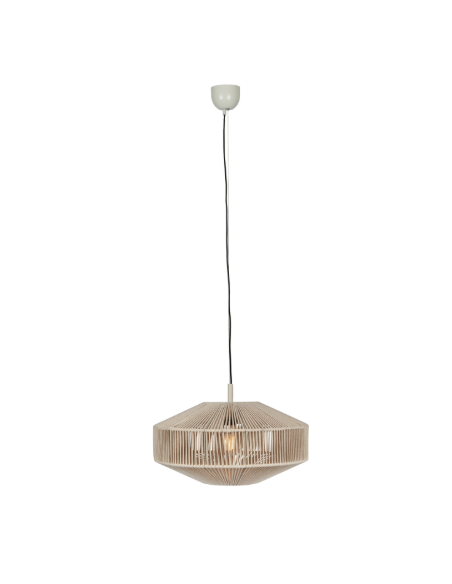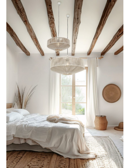 Trio LightingA pendente Svea destaca-se pelo estilo boho com cúpula de tecido de algodão trançado em tom areia, criando uma iluminação suave repleta de charme natural.
