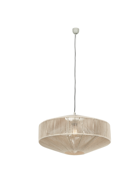 A luminária suspensa Svea combina o visual casual do boho com a leveza do algodão cuidadosamente trançado, promovendo um fascinante jogo de luz e sombra. Equipada com soquete E27 para lâmpadas LED de até 10 W (não incluída), possui 61 cm de diâmetro, altura ajustável de até 150 cm, estrutura metálica em tom creme e grau de proteção IP20, adequando-se perfeitamente a salas de estar, jantar, quartos ou hall de entrada