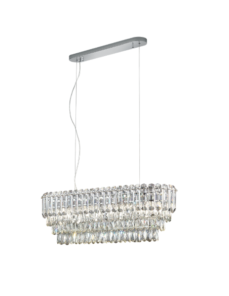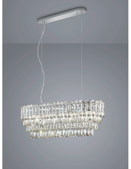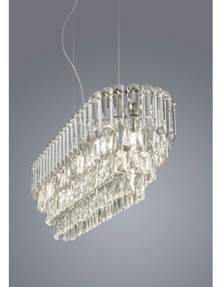 Trio LightingO candeeiro suspenso MALIZIA destaca-se pela elegância opulenta, com elementos de cristal que criam uma atmosfera luxuosa e sofisticada em qualquer divisão.