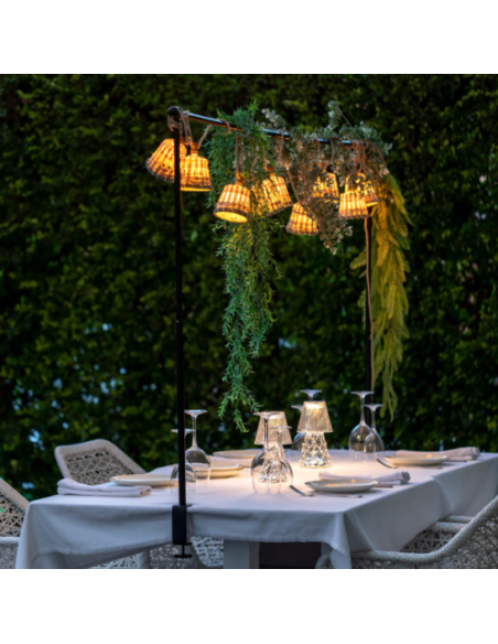 A GARLAND LIFT é uma moldura metálica com sistema de iluminação LED integrado, desenhada para sustentar correntes de luzes e criar ambientes festivos em espaços exteriores.