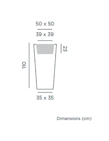 O Vaso/ floreira Melisa tem uma forma de trapézio, é fabricada em diversos tamanhos, acabamentos e cores.