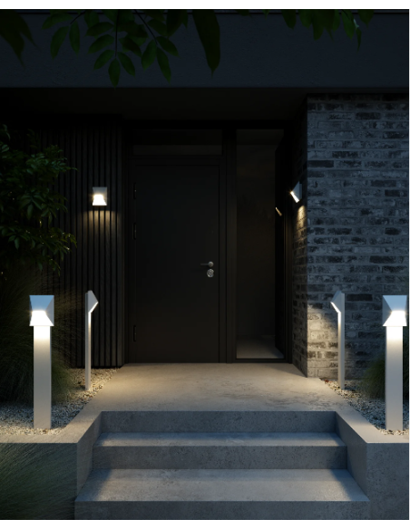 CANDEEIRO DE PAREDE PARA EXTERIOR COM DESIGN ANGULAR E ARQUITETÓNICO.