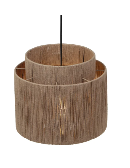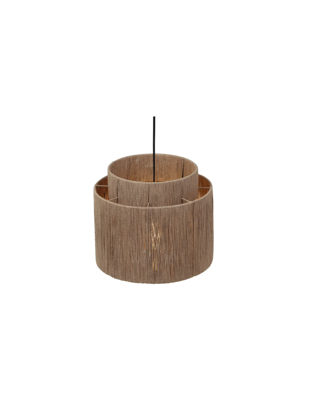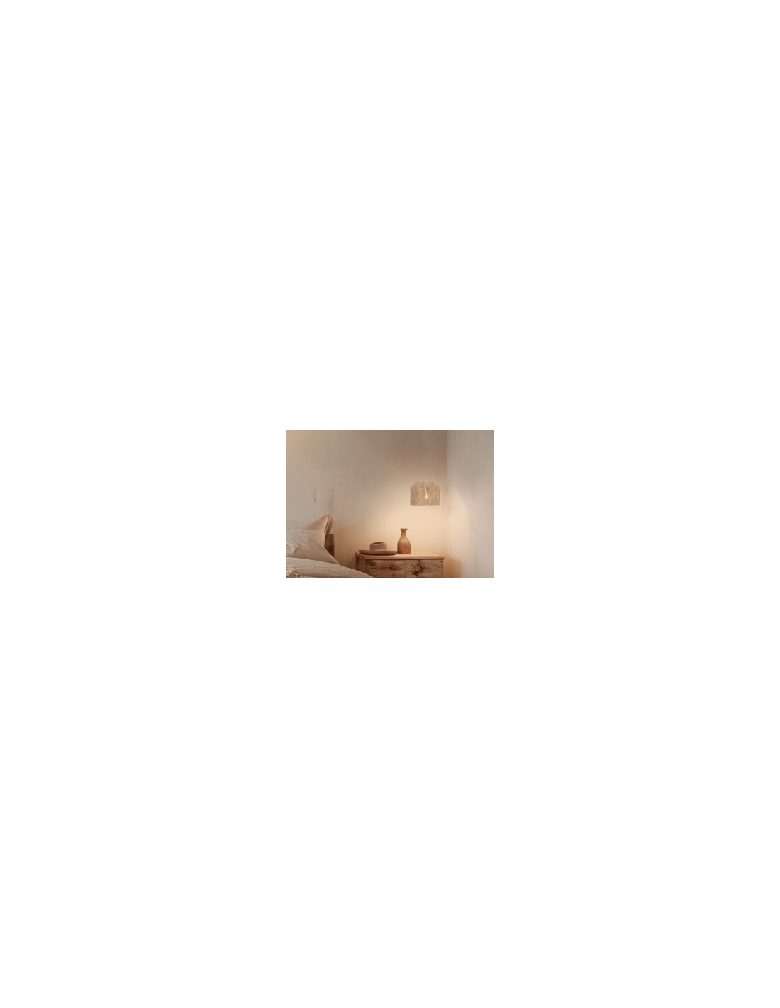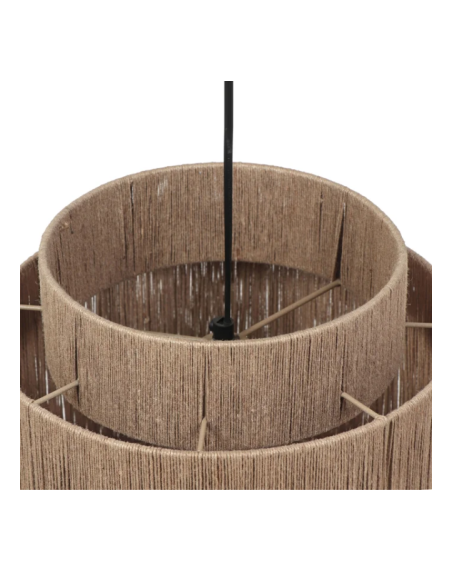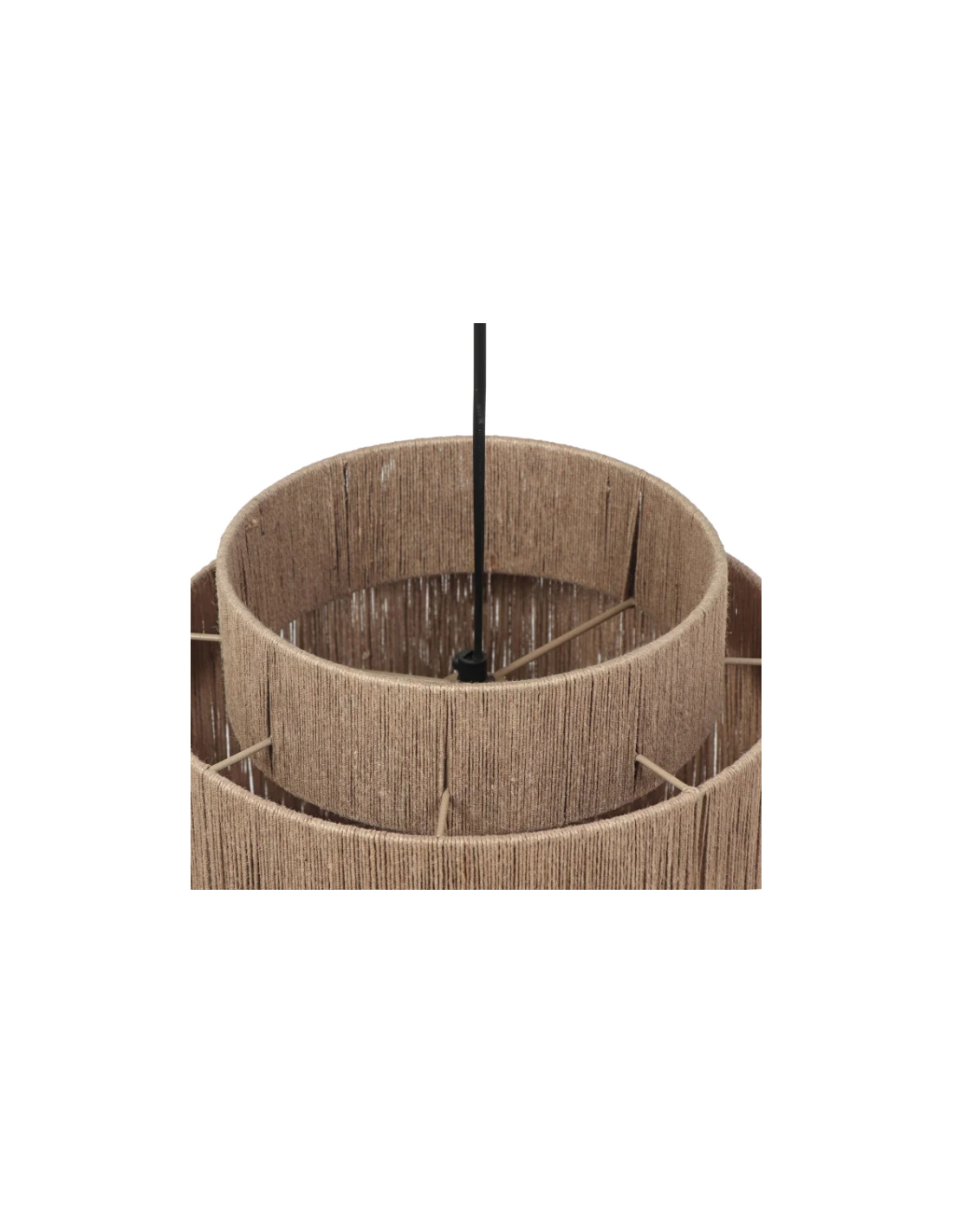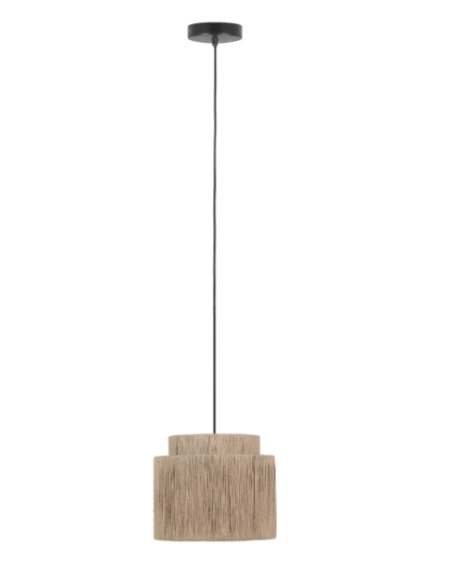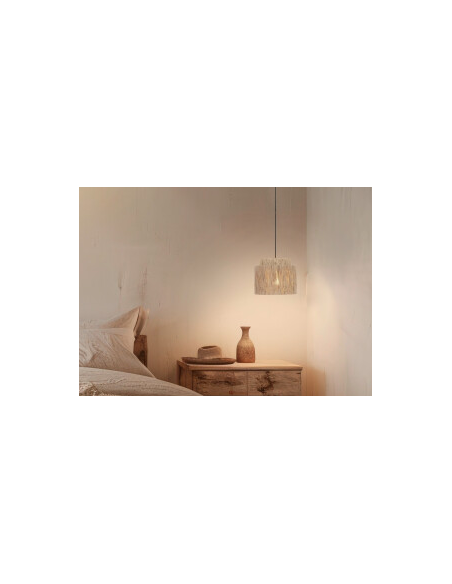 A SMILLA é uma luminária suspensa com design boho, composta por cúpula em juta natural e acabamento em metal preto fosco, compatível com lâmpadas LED E27, perfeita para salas, quartos ou áreas sociais.