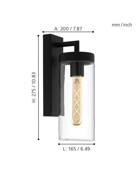 O aplique de parede para exterior BOVOLONE tem um corpo metálico preto zincado combinado com um cilindro de vidro transparente através do qual a lâmpada é visível. O produto é adequado para utilização no exterior devido à sua proteção IP44 resistente a água pulverizada. O seu estilo moderno irá complementar maravilhosamente o seu espaço exterior.