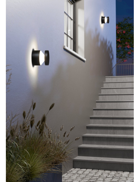O candeeiro de parede exterior LED MELZO tem um corpo cilíndrico em alumínio fundido preto. Os LED integrados por detrás do painel de luz de plástico transparente no corpo brilham na parte superior do candeeiro e produzem uma agradável luz branca quente indireta. Tem proteção IP65 resistente a poeiras e água a baixa pressão e é adequada para utilização no exterior. Funciona igualmente bem como candeeiro de parede, de teto ou de poste. O produto tem um design minimalista que se integra em qualquer espaço exterior moderno - é também ideal para áreas de entrada da casa, terraços ou varandas.