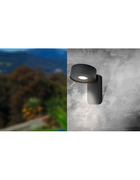 O aplique de parede LED exterior PALOSCO tem um corpo metálico zincado em preto com uma cabeça redonda. Os LEDs integrados por trás do painel de plástico transparente produzem uma agradável luz branca quente. É adequado para utilização não externa devido à sua proteção IP44 resistente a salpicos de água. Graças ao seu design moderno, integra-se em quase todos os espaços exteriores e proporciona uma iluminação indireta elegante para as paredes exteriores da casa.