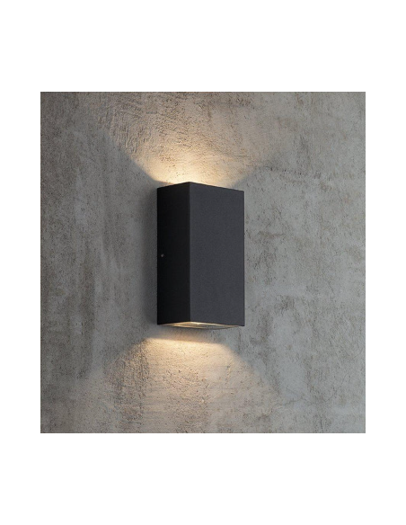 O ROLD Nordlux é um aplique de exterior com iluminação LED integrada, desenvolvido para oferecer uma solução duradoura e resistente para ambientes exteriores. A sua estrutura é fabricada em alumínio fundido com acabamento em preto mate, garantindo resistência à corrosão e às intempéries.