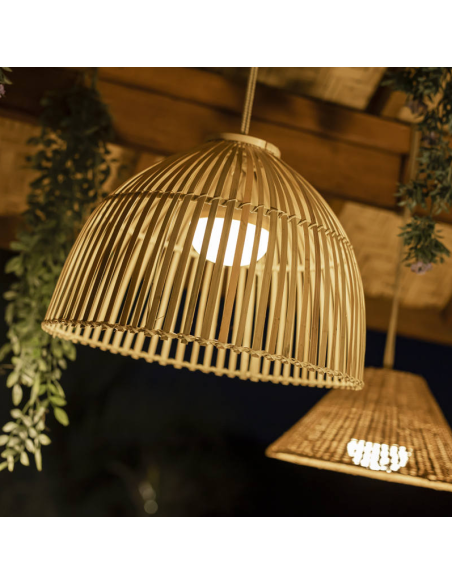O candeeiro suspenso REONA destaca-se pelo seu design artesanal, com estrutura em corda natural trançada, que adiciona um toque rústico e natural aos espaços onde é aplicado. Este candeeiro suspenso de exterior é ideal para ambientes de estilo boho, rústico ou mediterrânico, tornando-se uma solução perfeita para restaurantes ao ar livre, zonas lounge de hotéis, varandas residenciais ou jardins.