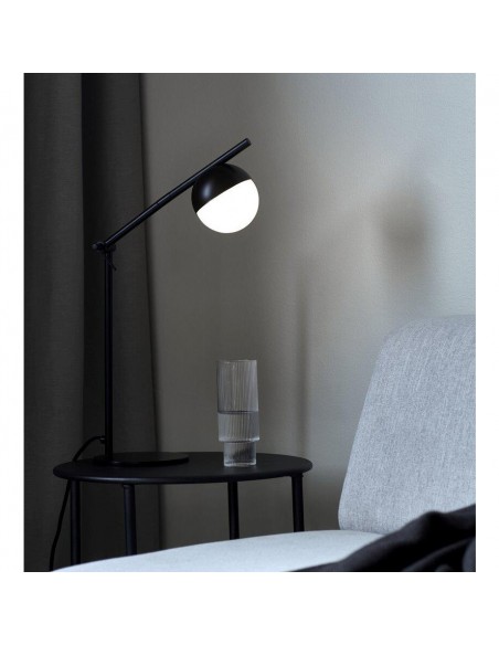 Contina combina design atraente e funcionalidade, onde são os detalhes cuidadosamente selecionados que fazem a série se destacar e ser única. A moldura de luz é completada por uma cúpula esférica de vidro branco opala que esconde a fonte de luz e espalha uma luz suave e sem reflexos na sala. A cabeça da lâmpada pode ser girada para ambos os lados e, simultaneamente, a parte superior da moldura pode ser ajustada para cima e para baixo. O vidro desta lâmpada é soprado pela boca e foi feito individualmente à mão. Devido a este processo único, podem aparecer bolhas de ar no vidro e a espessura do vidro também pode variar. Isso confere ao vidro seu caráter e aparência vívida.