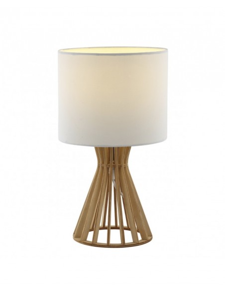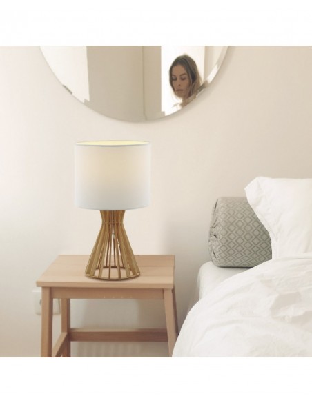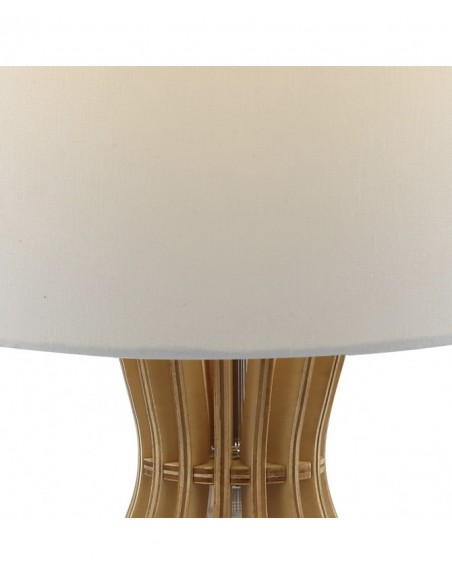O candeeiro de mesa Bartan combina o calor da madeira natural com a suavidade de um abajur de tecido, criando um brilho ambiente acolhedor e aconchegante.