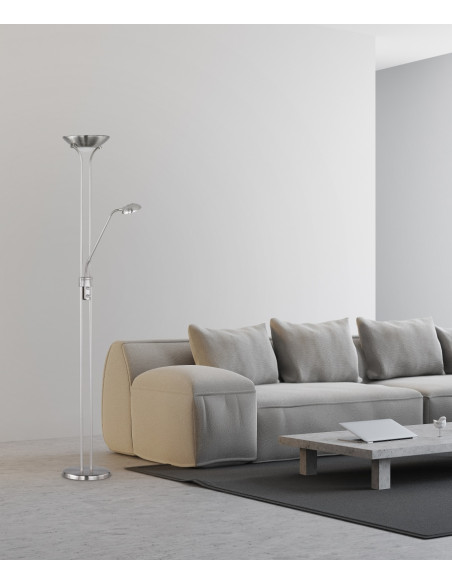 A função de regulação da intensidade da luz também lhe permite ajustar a luminosidade conforme necessário e adaptá-la às suas necessidades. Idealmente, a luz deve ser posicionada junto ao sofá, uma vez que um braço de leitura flexível proporciona o melhor resultado de iluminação possível como fonte de luz principal. Este pode ser alinhado de forma direcionada para que o padrão de luz desejado possa ser selecionado livremente. A luz também pode ser ligada separadamente. O esquema de cores tem um aspeto sofisticado e pode ser integrado em estilos de mobiliário modernos e clássicos.