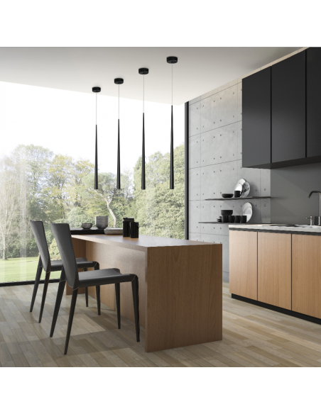 Bendis incorpora um inovador sistema de instalação ajustável, perfeito para iluminar mesas de jantar. Permite instalar a base no ponto de luz da instalação e colocar os 2 suportes de acordo com a necessidade do projeto. Um formato tubular desenhado para realçar o que está por baixo. Facilmente ajustável em altura. Cabo de suspensão transparente.