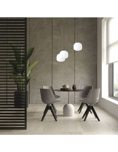 O candeeiro de teto suspenso MANTUNALLE apresenta três abajures redondos feitos de vidro branco com nervuras e um suporte de metal preto. Combina na perfeição com interiores modernos e escandinavos. Devido ao design invulgar do seu suporte, este candeeiro faz lembrar um mobile. O produto chama a atenção em qualquer interior, seja na cozinha, na sala de estar ou por cima da mesa da sala de jantar.