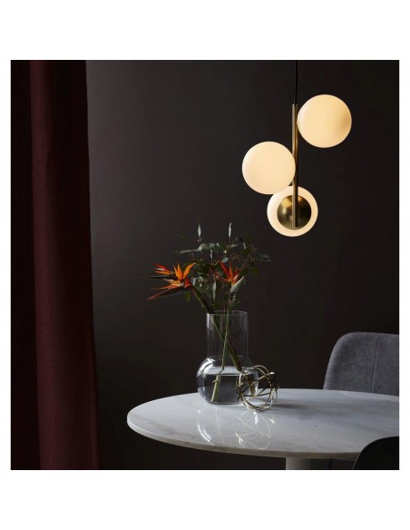 Suspensão Lilly com 3 bolas de vidro opalinas.