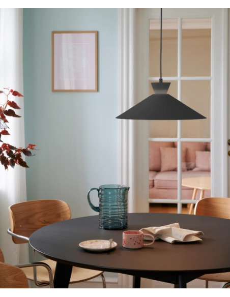 Dial é uma família moderna e contemporânea inspirada em designs de iluminação distintos dos anos 50. O estilo é nórdico e aerodinâmico, com formato aberto e geométrico que permite a passagem de muita luz. A cortina aberta cria um efeito decorativo de iluminação ascendente quando a luz é acesa.