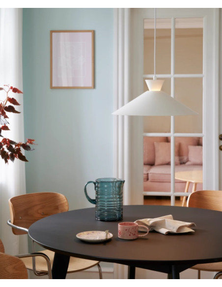 Dial é uma família moderna e contemporânea inspirada em designs de iluminação distintos dos anos 50. O estilo é nórdico e aerodinâmico, com formato aberto e geométrico que permite a passagem de muita luz. A cortina aberta cria um efeito decorativo de iluminação ascendente quando a luz é acesa.
