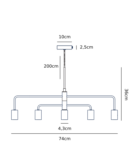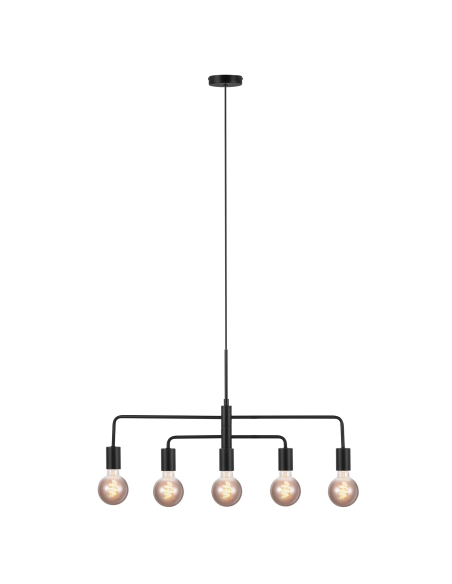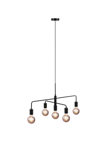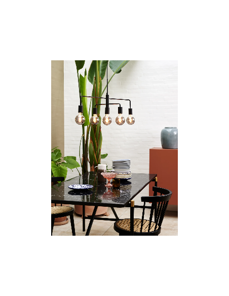 Suspensão em metal preto ou dourado c/ braço giratório p/ 5 lâmpadas E27