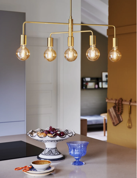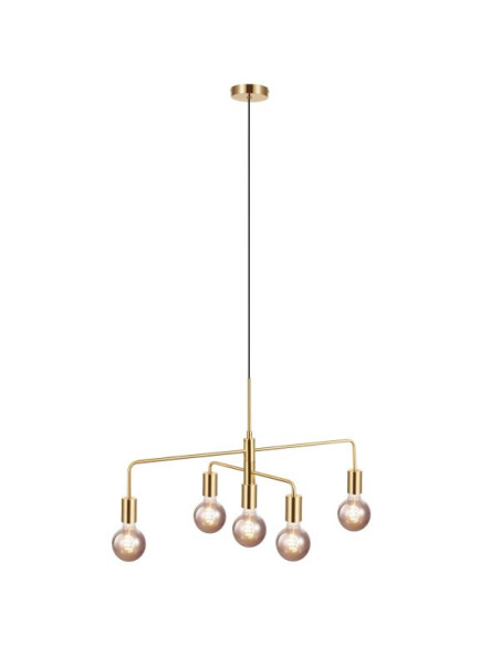 Suspensão em metal preto ou dourado c/ braço giratório p/ 5 lâmpadas E27
