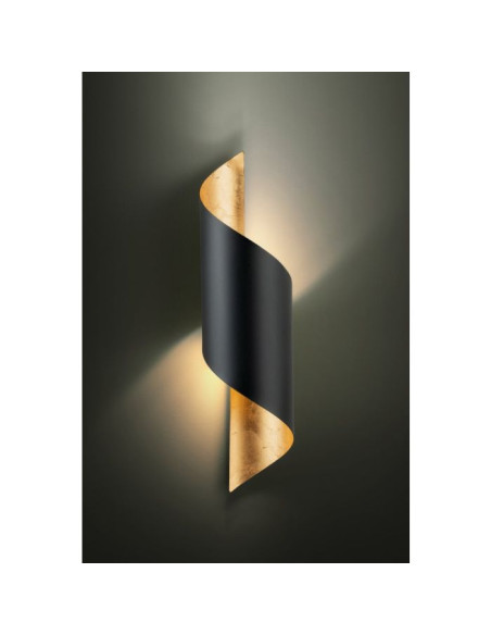 O aplique exclusivo da série EGLO Stars of Light com corpo metálico curvo em preto com interior dourado combina harmoniosamente com as tendências da vida moderna