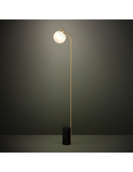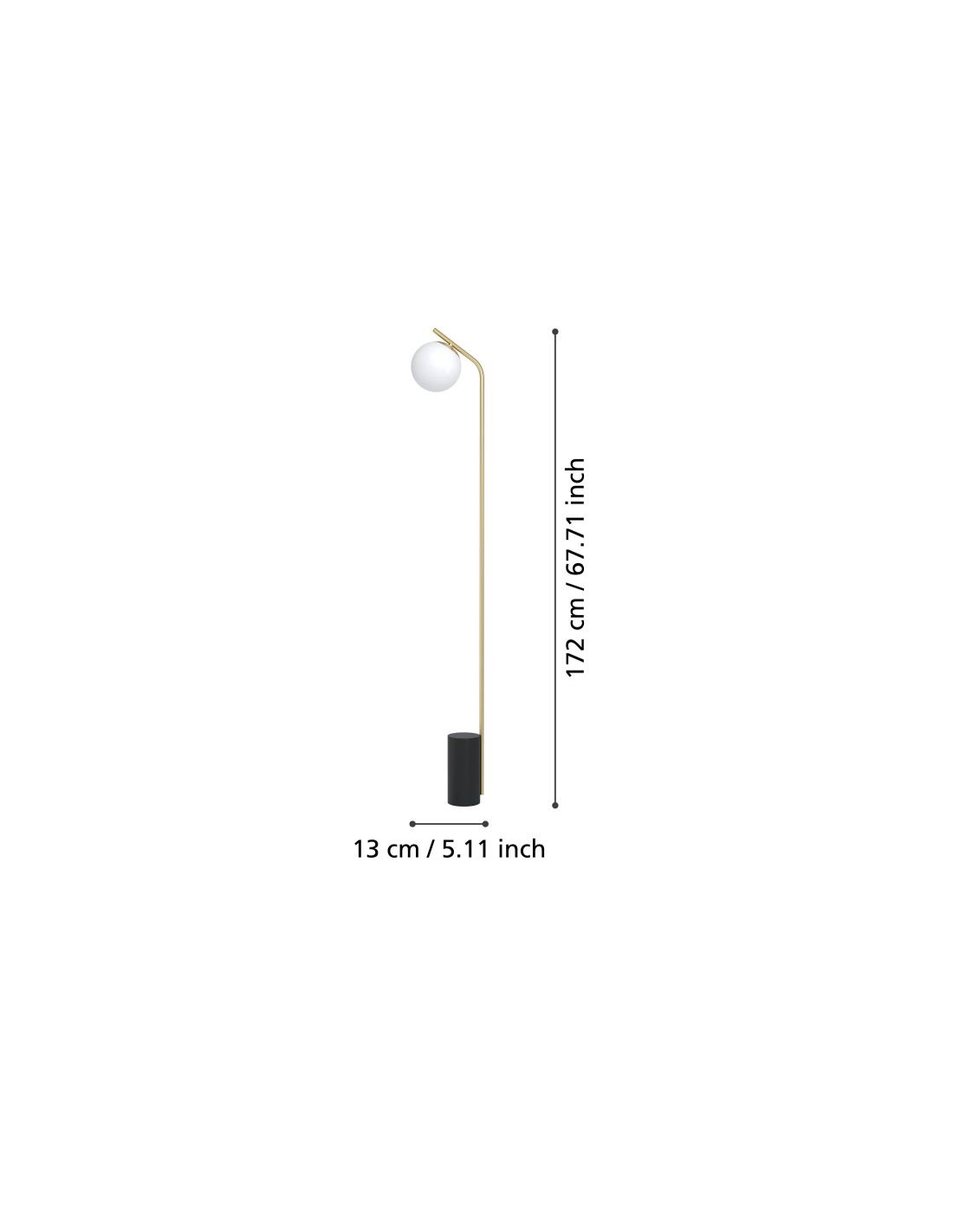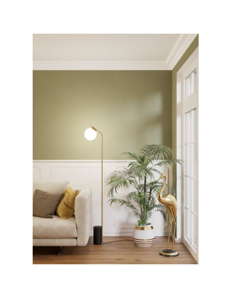 O candeeiro de pé BETULIA apresenta uma base metálica cilíndrica em preto com um pé de metal longo e reto em latão escovado. O design apresenta um corpo longo de metal e um difusor de globo de vidro opalino. O candeeiro pode ser ligado e desligado facilmente utilizando o interruptor de chão. Com o seu design minimalista, este candeeiro de pé mistura-se bem com vários estilos de decoração interior, proporcionando uma iluminação elegante em qualquer espaço, seja na sala de estar, no quarto, no corredor ou na sala de jantar.