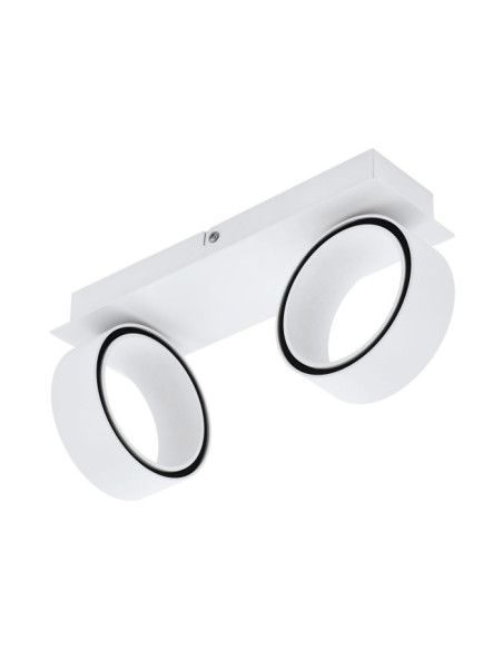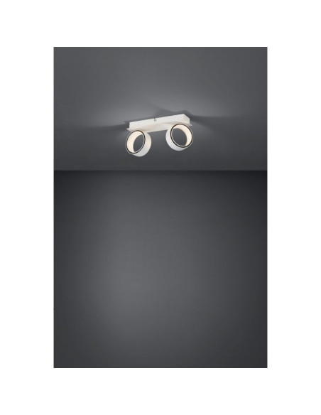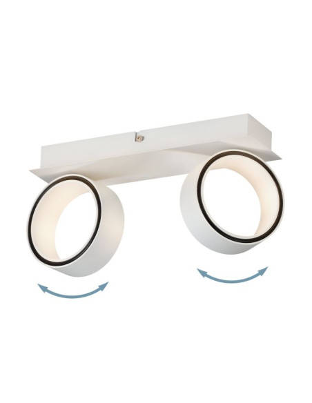 A luz de teto ALBARIZA LED é produzida de metal branco e tem dois projetores circulares ajustáveis. Os LEDs integrados no interior dos anéis dos holofotes produzem uma luz branca quente indireta. Esta luz de teto minimalista mistura-se de forma perfeita com interiores modernos e, com as suas cabeças pivotantes, proporciona uma iluminação versátil, seja na cozinha, sala, quarto ou halls.
